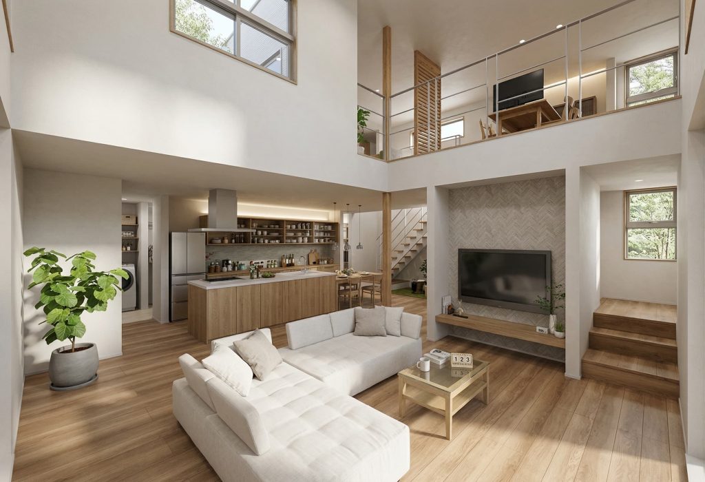 従来の木造住宅では叶わなかった大空間・大開口を可能にした『超空間の家』。
