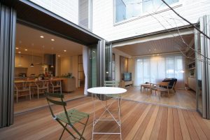 外から見られることのない中庭では、プライバシーを確保しながら光と風を取り入れ、晴れた日は窓を全開にして心地よく過ごすことができます。