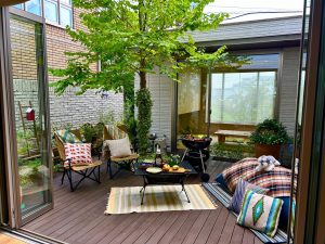 外から見られることのない中庭では、プライバシーを確保しながら光と風を取り入れ、晴れた日は窓を全開にして心地よく過ごすことができます。