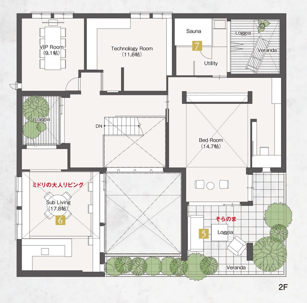 「緑をつつむ家」をコンセプトに、忙しい日々を忘れ、リラックスできる開放感のある設計にしています。