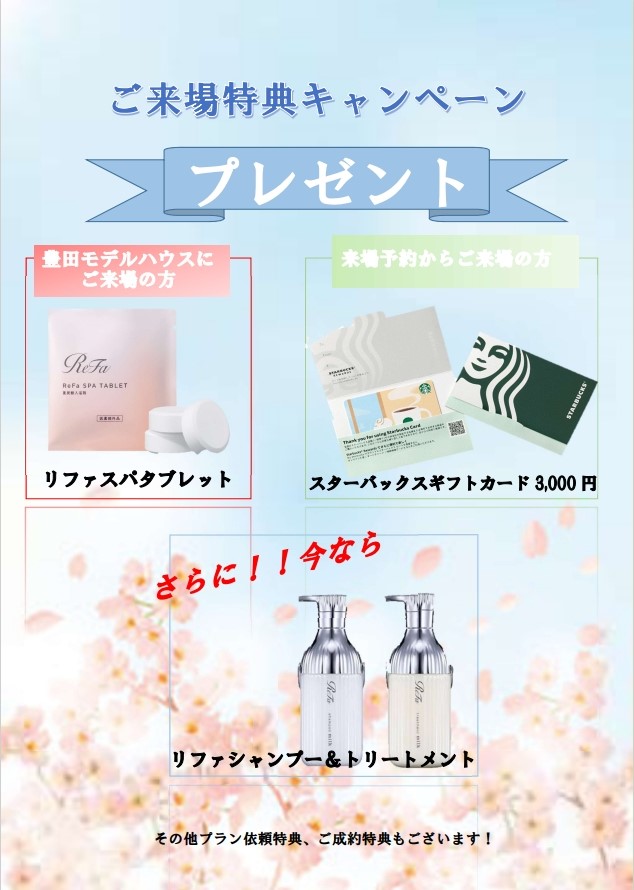 《来場特典》残りあとわずか!リファアイテムプレゼント&モニターハウスキャンペーン