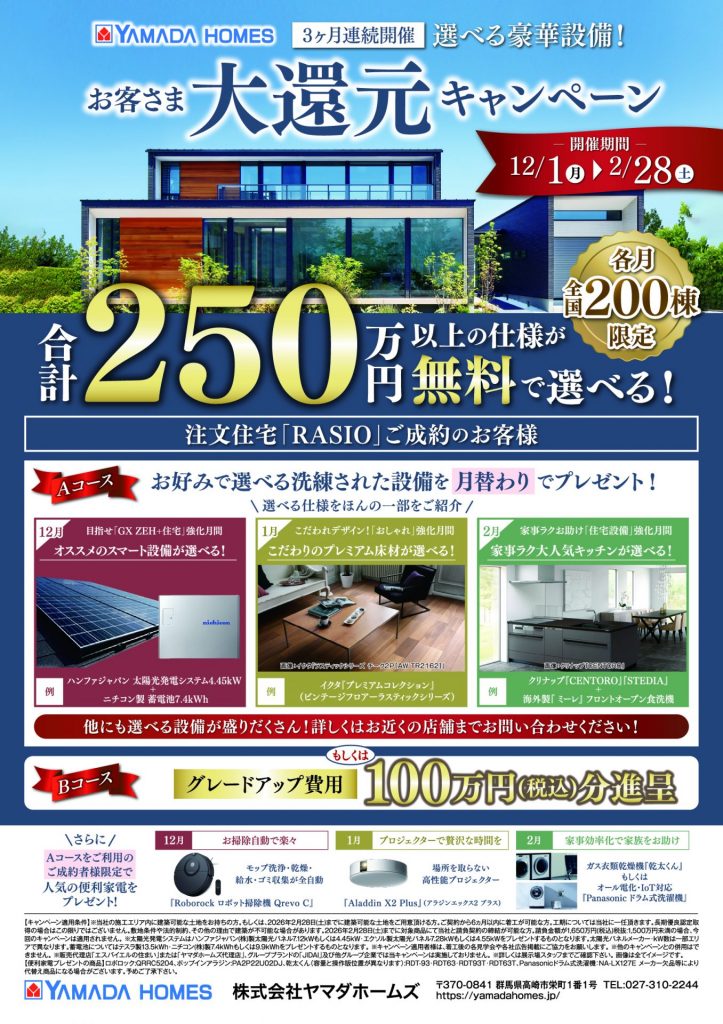 12月1日(月)~2月28日(土)はお客様大還元キャンペーンとして