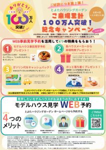 モデルハウス見学WEB予約で4大特典をもらおう!「ご来場累計100万人突破!記念キャンペーン」PART2 開催!(~10/31)