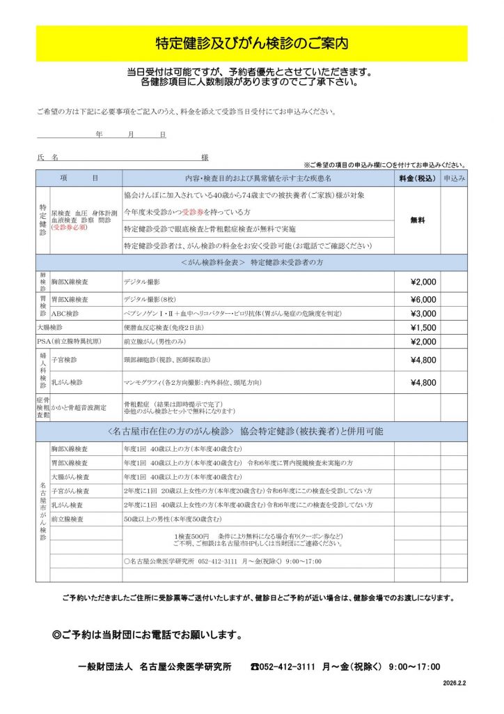 一宮会場2/27(金)開催! 協会けんぽ無料集団検診 ご予約受付中
