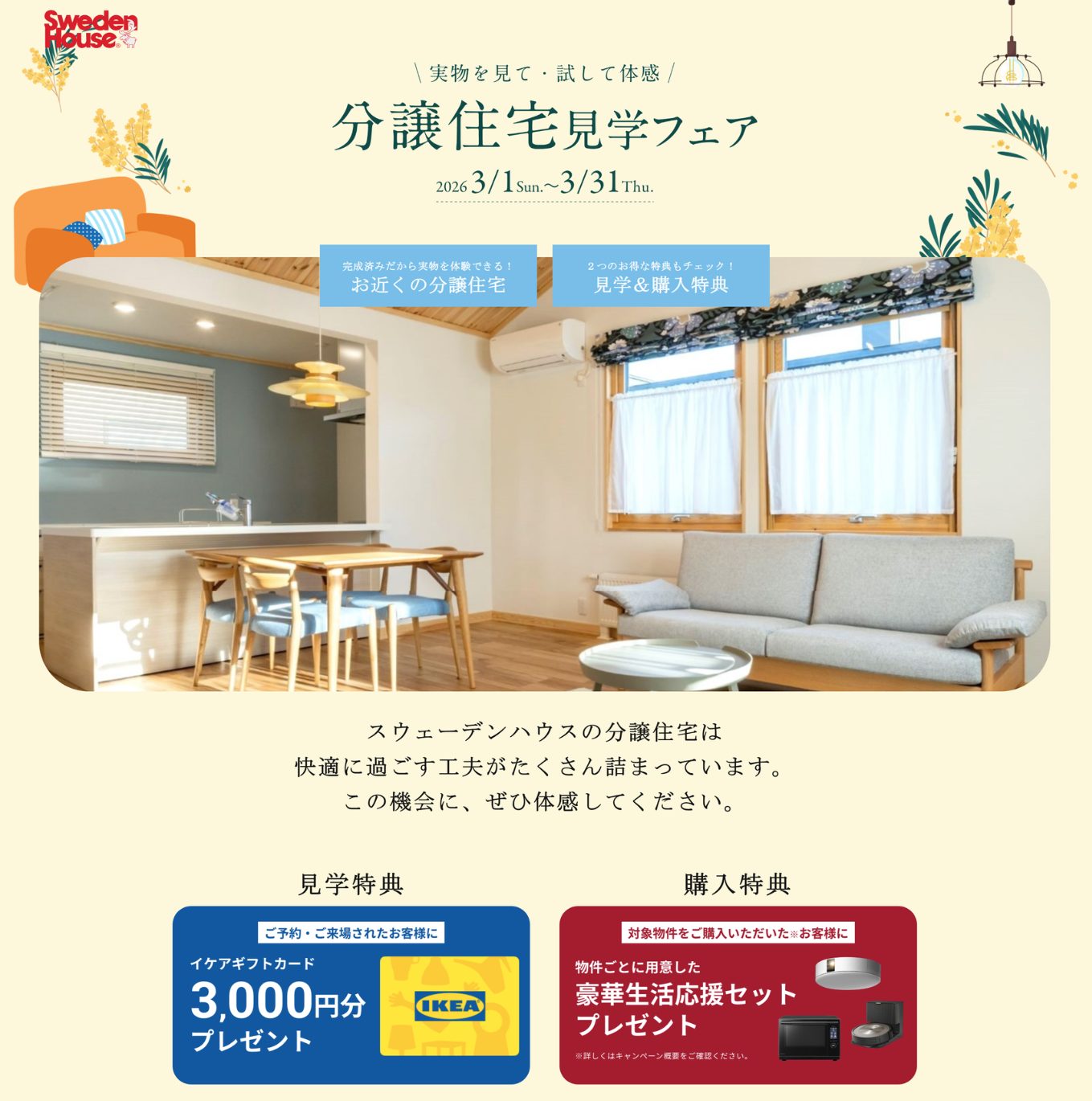 - 分譲住宅フェア開催!分譲住宅見学ご予約のお客様へ、IKEAカード3,000円分プレゼント♪