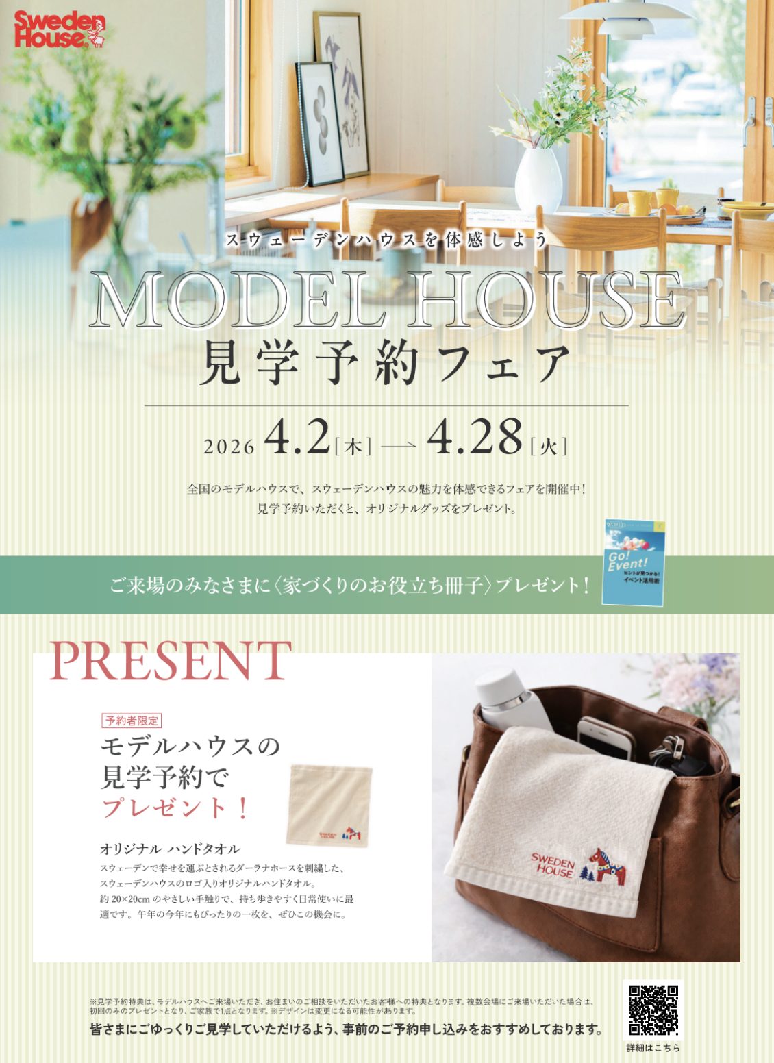 4月2日(木)から28日(火)までの期間中、スウェーデンハウスのモデルハウスへ