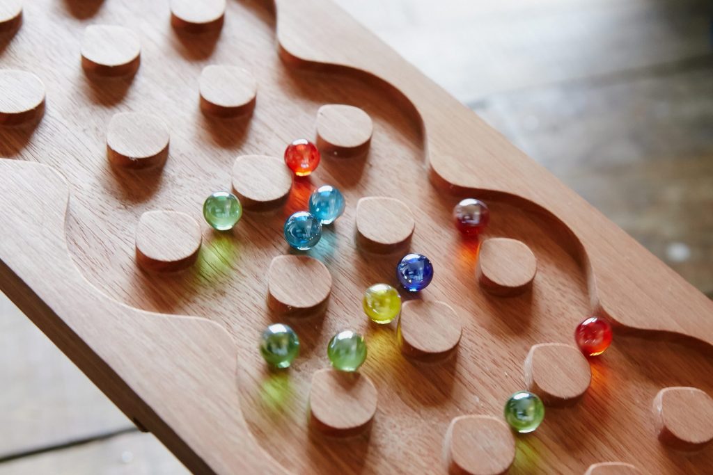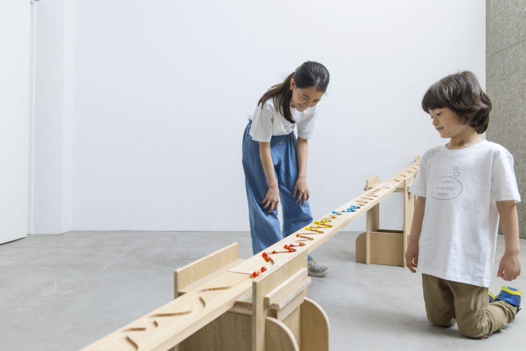 木の温もりと美しいビー玉の動きや心地よい音は、子どものみならず大人も魅了します。