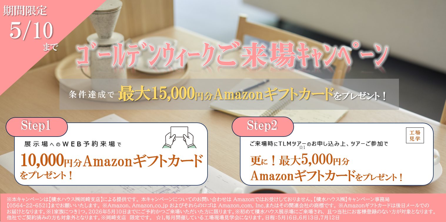 2026年5月10日までに岡崎支店エリアの展示場にWEBご予約の上ご来場で